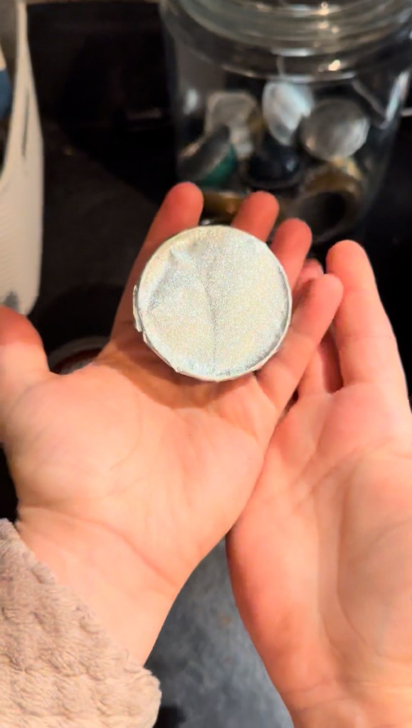 Now, I just needed to get this new coffee to interface with my Nespresso. I’m all about making do with what you have, and even though my Nespresso is nearing a decade, I was not willing to buy a new machine. When I first got my Nespresso years ago, I had a friend who, instead of buying the name-brand pods, made their own. I went online looking for the tops that allow you to reuse old pods. What I found was even better than the coffee filter paper tops my friend had used, so I ordered them. You can check them out here. I like to compost my used coffee, reuse the pods, and recycle the used lids. Win win win!